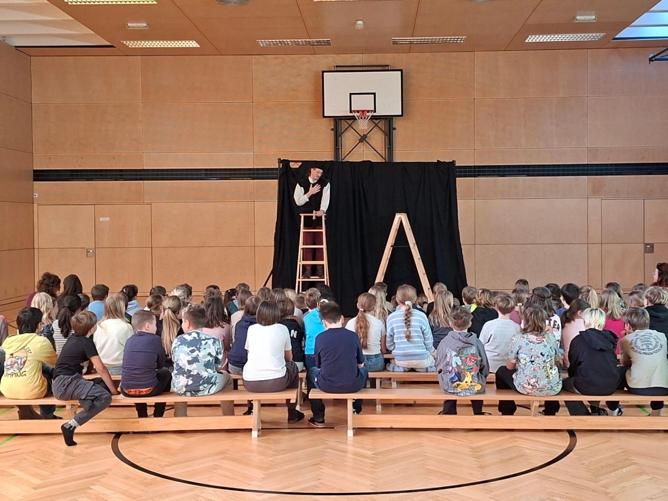 Im Rahmen des Tiroler Kulturservices besuchten uns eine Schauspielerin und ein Schauspieler, um uns die lustigen Geschichten aus Schilda und deren Streiche näherzubringen. Bei diesem Erzähltheater wurden die Kinder sehr stark eingebunden. Es wurde unter Teilnahme aller fünf Klassen der VS Wiesing viel gelacht und applaudiert, somit war die Veranstaltung ein voller Erfolg!